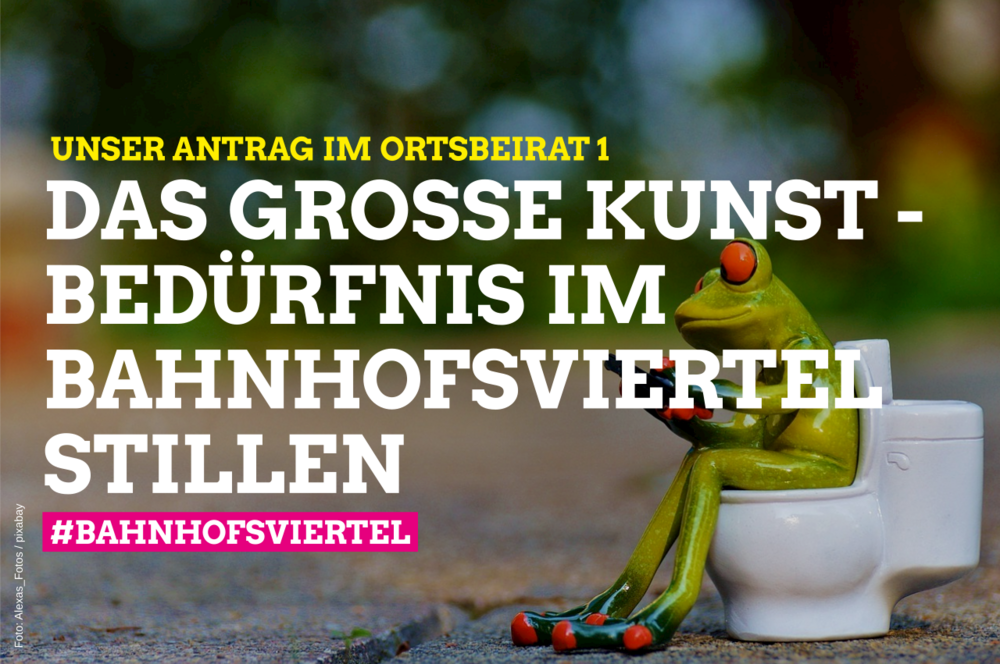 Seit vielen Jahren fordern die Bürger*innen in der gesamten Stadt, aber vor allem im Bahnhofsviertel, ausreichend öffentliche Toiletten. Passiert ist seitdem – mit Ausnahme des Urinals in der Moselstraße: Nichts. Seit Jahren warten die Menschen auf ein Toilettenkonzept, das seinen Namen verdient. Streit zwischen den Dezernaten hat die Erstellung des Konzeptes verzögert. Vorgelegt wurde dem Ortsbeirat 1 noch immer nichts.