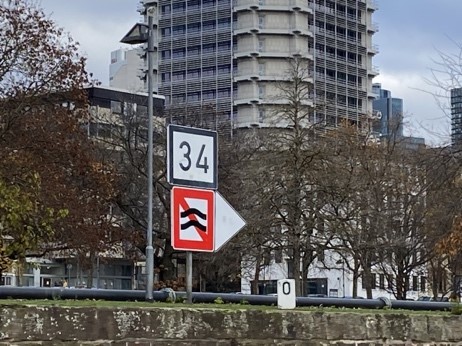 Die steilen Uferwände zwischen Friedensbrücke und Ignatz-Bubis-Brücke bewirken, dass Wellen immer wieder hin- und herschwappen und nur mit erheblicher Verzögerung auslaufen. Ursprünglich war gemäß Wasserschifffahrtsamt geplant, dass in der Frankfurter Innenstadt nur mit Schrittgeschwindigkeit gefahren werden darf. Dies ist aber bei starker Strömung flussabwärts nicht möglich, daher wurde das Wellenschlagverbot als Kompromiss eingeführt.