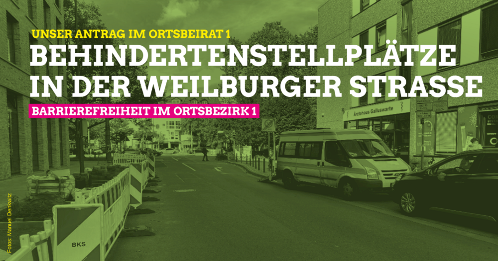 Vor dem Ärztehaus müssen immer wieder Krankentransporter und Behindertentransporter in zweiter Reihe halten, weil der einzige Behindertenparkplatz nicht ausreicht oder Falschparkende diesen blockieren. Vor dem Beginn der Baustellen in der Weilburger Straße bestanden zwei Behindertenparkplätze (siehe Screenshot von Google Street View, Oktober 2009). Nach dem Umbau der Straße ist auf der westlichen Seite die Parkbucht für einen Behindertenparkplatz zu klein. Daher kann ein zweiter Behindertenparkplatz nur auf der östlichen Seite eingerichtet werden.