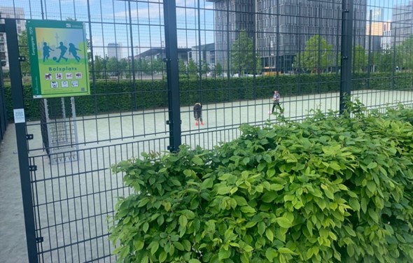 Wir freuen uns, dass der Basketballplatz, der auch zum Boltzen genutzt wird, so rege angenommen wird und der Park am Gleisfeldpark ein sozialer Ort des Zusammenkommens geworden ist. Direkte Anwohnende des Gleisfeldparks beklagen jedoch, dass insbesondere bestimmte Geräusche, die durch Aktivitäten im Basketballplatz entstehen, besonders gut hörbar seien und sich störend auswirken würden.