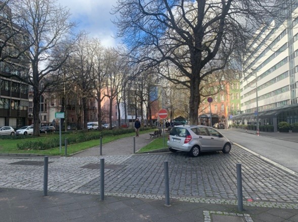 Das Abpollern dieser Fläche zu beiden Fahrbahnseiten hin verhindert kurzfristig zuverlässig das verbotene Abstellen von PKW und den Schutz der Fußgehenden.
