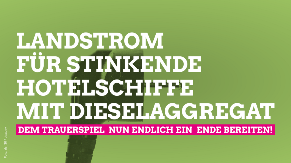 Die Forderung nach Versorgung der Hotelschiffe mit Landstrom beschäftigt die Bevölkerung entlang des nördlichen Mainufers nun schon seit Jahrzehnten. Stattdessen betreibt jedes Hotelschiff ein lautes und stinkendes Dieselaggregat zur elektrischen Versorgung des Schiffes wie z.B. Beleuchtung, elektrische Kleingeräte in Hotelschiffen, Küche oder Warmwasserversorung. Es kommt nicht etwa der ohnehin problematische Diesel aus dem Straßenverkehr zum Einsatz, sondern schadstoffintensiver Schiffsdiesel (nicht zur verwechseln mit dem Schweröl in der Hochseeschifffahrt). Bemühungen in der Luftreinhaltepolitik für LKW und PKW werden in Flussnähe durch schiffsdieselbetriebene Motoren konterkariert.