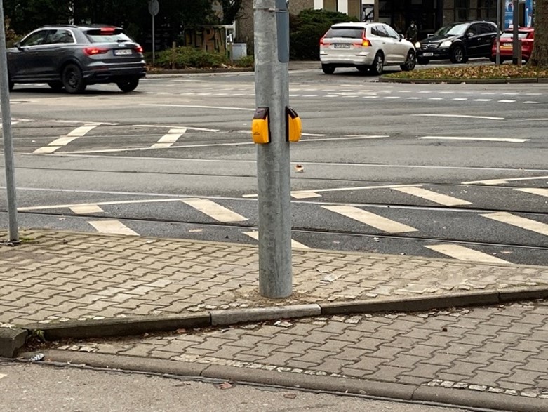 Die nach einem Verkehrsunfall beschädigte Lichtsignalanlage wurde Ende November 2021 wieder hergestellt. Jedoch weist diese für die Benutzung durch Fußgehende erhebliche Mängel auf, wie beispielsweise die verwirrende Anordnung der Taster zur Grün-Anforderung.
