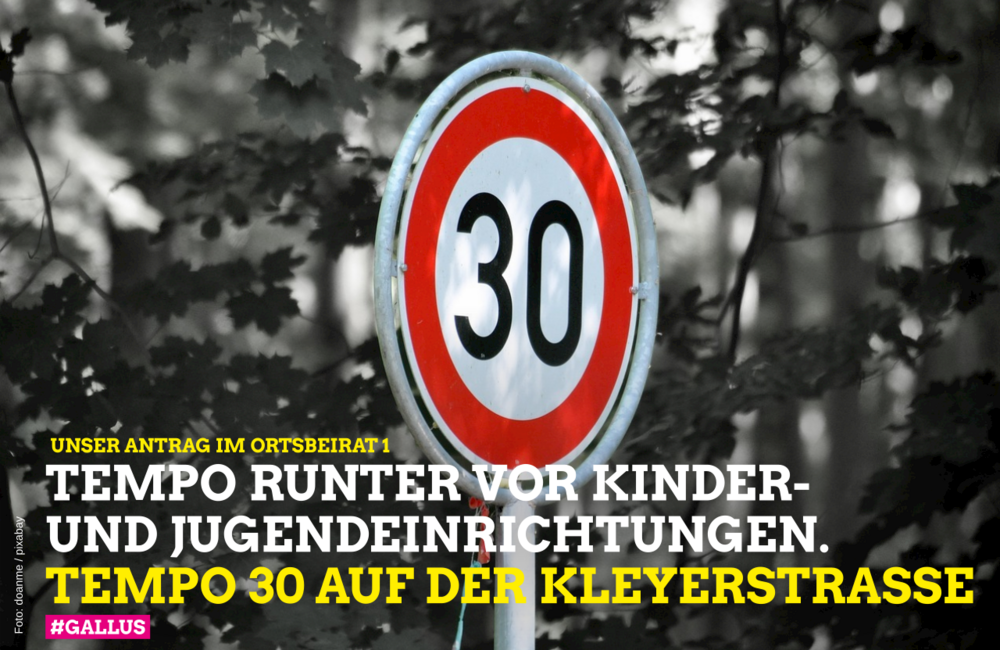 Unser Antrag im Ortsbeirat 1: Tempo runter vor Kinder- und Jugendeinrichtungen. Hier: Tempo 30 auf der Kleyerstraße